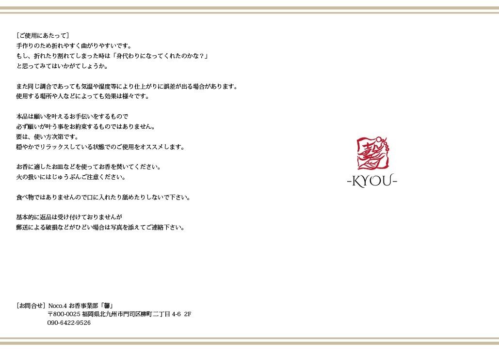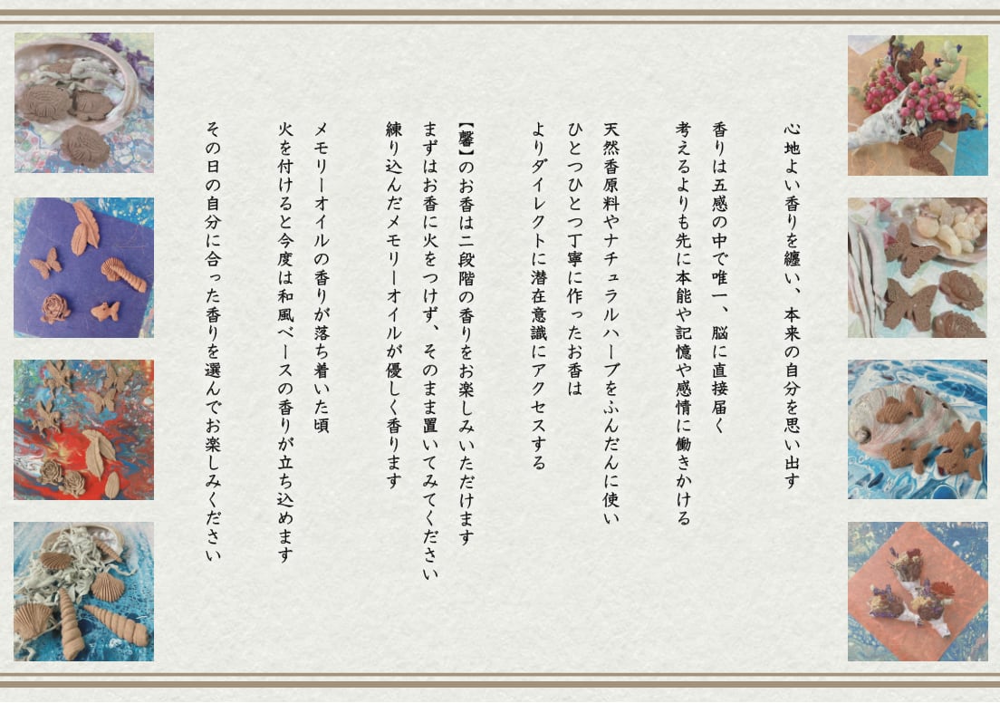天然香原料を使用して、ひとつひとつ手作りしたお香です。